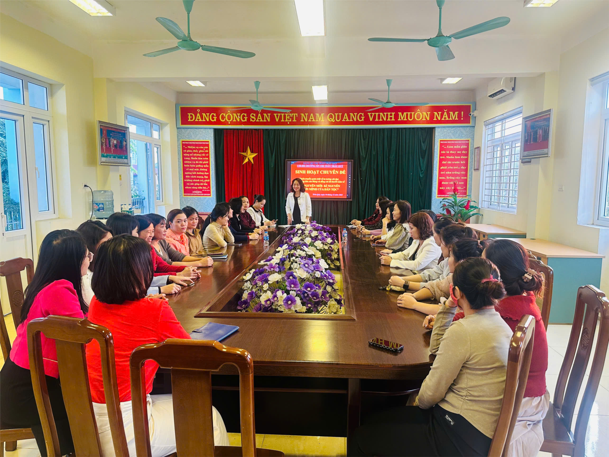 Tham gia sinh hoạt chuyên đề có 100% Đảng viên của Chi bộ, trong đó đ/c bí thư chi bộ Trần thị Diệu Anh làm chủ trì. Đ/c thông qua các văn bản tài liệu quán triệt tuyên truyền “ Kỷ nguyên mới- Kỷ nguyên vươn mình của dân tộc”.