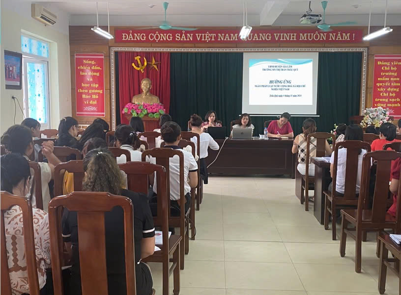 Với mục đích muốn lan tỏa sâu rộng trong đời sống xã hội của CB,GV,NV về tinh thần thượng tôn Hiến pháp, pháp luật. BGH nhận thấy được sự cần thiết và tầm quan trọng của việc tuyên truyền hưởng ứng “ Ngày pháp luật” cho CB,GV,NV do đó đã tổ chức nghiêm túc hoạt động tuyên truyền này tới 100% CB,GV,NV.